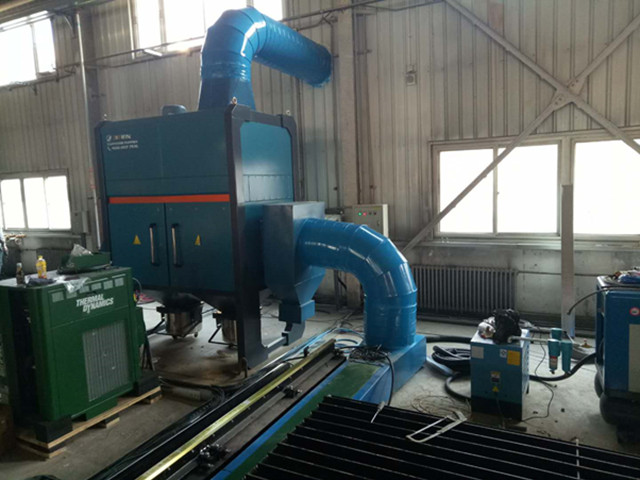 下吸式煙塵凈化系統抽風是通過下吸式抽風切割臺來實現的,下吸式抽風切割臺分成若干個區域,每個區域設計有風門吸風,切割槍頭在每個區域切割時,相應區域的風門打開抽風,將切割機的粉塵吸除。