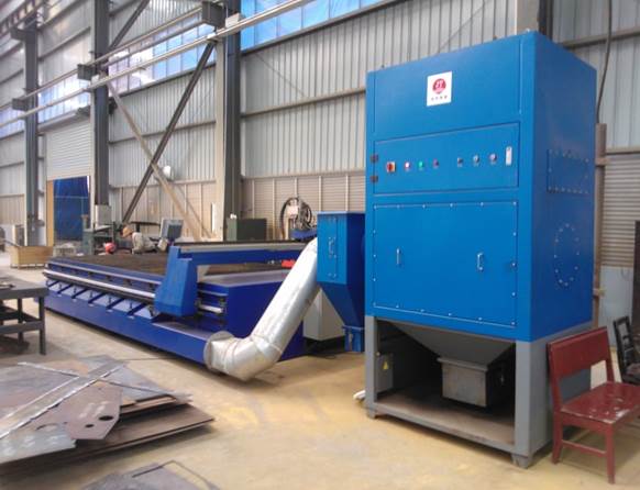 自動跟蹤數控切割機除塵系統是切割料臺、跟蹤定位煙塵捕捉系統和煙塵凈化系統三大部分組成。跟蹤定位抽風系統安裝在切割料臺下部,吸風口可跟隨切割槍頭在平臺下一起移動,就近捕捉切割時產生的切割煙塵,由于靠近煙塵發生源,控煙、控塵所需風量較傳統捕捉方式小許多,更為經濟、節能、環保。